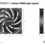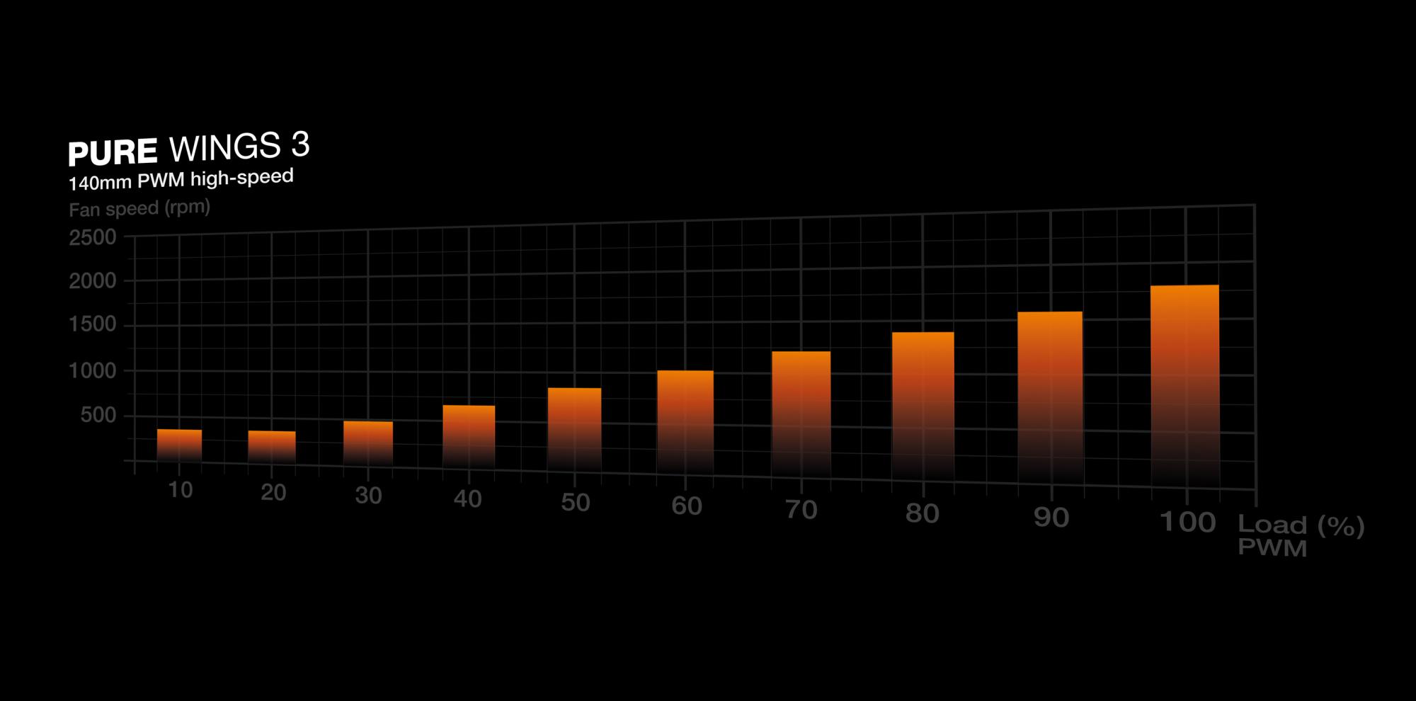 Pure Wings 3 140mm PWM high-speed | 140 mm | Type Fan | Suitable location Computer case | Rotational speed (max) 1800 RPM | Noise level (high speed) 30.5 dB | Maximum airflow 72.2 cfm | Airflow 122.6 m³/h | Pulse-width modulation (PWM) support Yes | Colour Black | Number of fans 1 fan(s) | Fan connector 4-pin | Weight 188 g