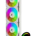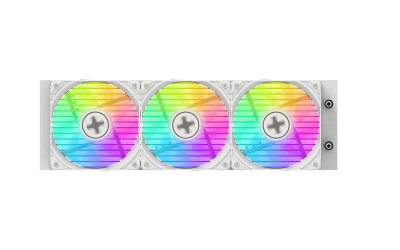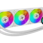 Model name LQ360G.W.ARGB | 120 mm | Type Liquid cooling kit | Supported processor sockets Intel LGA1851/LGA 1150 (Socket H3)/LGA 1151 (Socket H4)/LGA 1155 (Socket H2)/LGA 1156 (Socket H)/LGA 1200 (Socket H5)/LGA 1700/Socket AM4/Socket AM5 | Suitable location Processor | Airflow 76 m³/h | Bearing type Ceramic bearing | Pump connector 3-pin | Pump motor speed 2400 RPM | Colour White | Radiator material Aluminum | Base plate material Copper | Thermal Design Power (TDP) 350 W | Radiator height 27 mm | Waterblock height 54 mm | Weight 1.8 kg