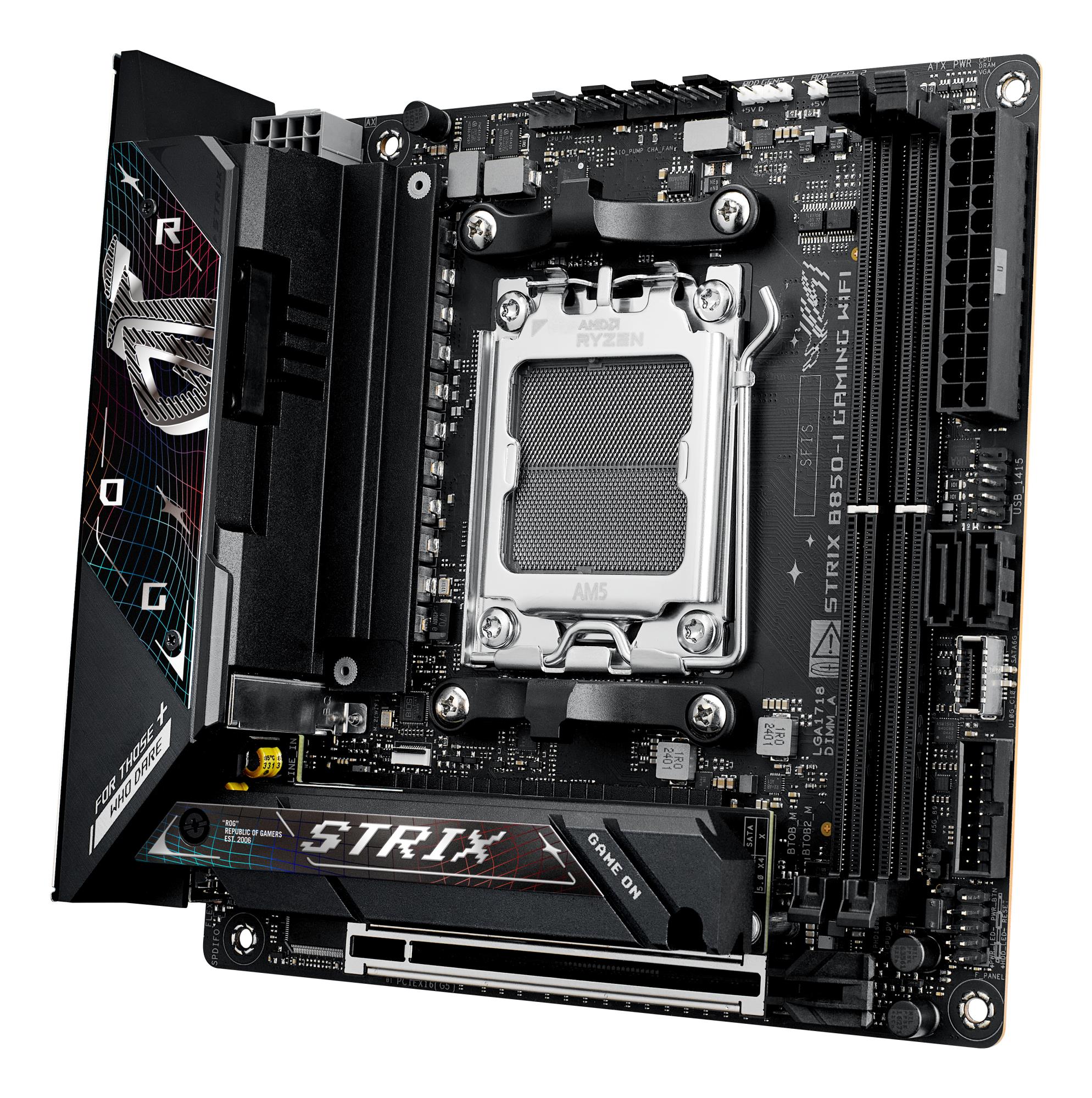 AMD B850 | mini ITX | Audio 7.1 channels | CPU AMD | Socket Socket AM5 | Series AMD Ryzen 7000 Series/AMD Ryzen 8000 Series/AMD Ryzen 9000 Series | Supported memory types DDR5-SDRAM | 2xNumber of memory slots | Memory slots type DIMM | Supported storage drive interfaces M.2,SATA III | 4096 x 2160 pixels | 2xUSB 2.0 ports quantity | 4xUSB 3.2 Gen 2 (3.1 Gen 2) Type-A ports quantity | 1xUSB 3.2 Gen 2 (3.1 Gen 2) Type-C ports quantity | 1xEthernet LAN (RJ-45) ports | 1xHDMI ports quantity | Wi-Fi Yes | Bluetooth Yes | Antenna included Yes | Weight 1.06 kg