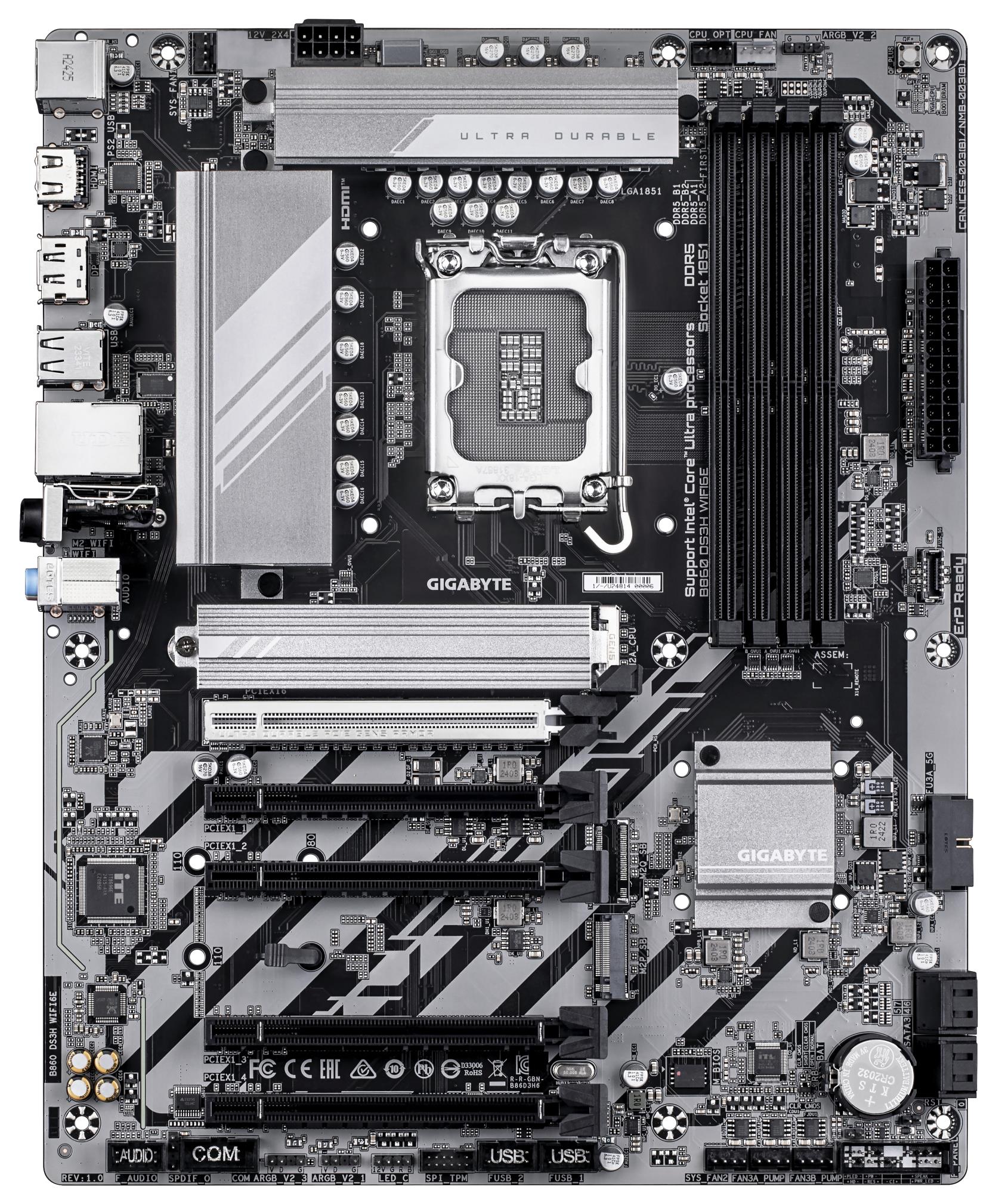 Intel B860 | ATX | Audio 7.1 channels | CPU Intel | Socket LGA 1851 (Socket V1) | Series Intel Core Ultra (Series 2) | Supported memory types DDR5-SDRAM | 4xNumber of memory slots | Memory slots type DIMM | Supported storage drive interfaces M.2,SATA III | 4096 x 2160 pixels | 4xUSB 2.0 ports quantity | 1xUSB 3.2 Gen 2 (3.1 Gen 2) Type-A ports quantity | 1xEthernet LAN (RJ-45) ports | 1xHDMI ports quantity | Wi-Fi Yes | Bluetooth Yes | Antenna included Yes | Weight 2 kg