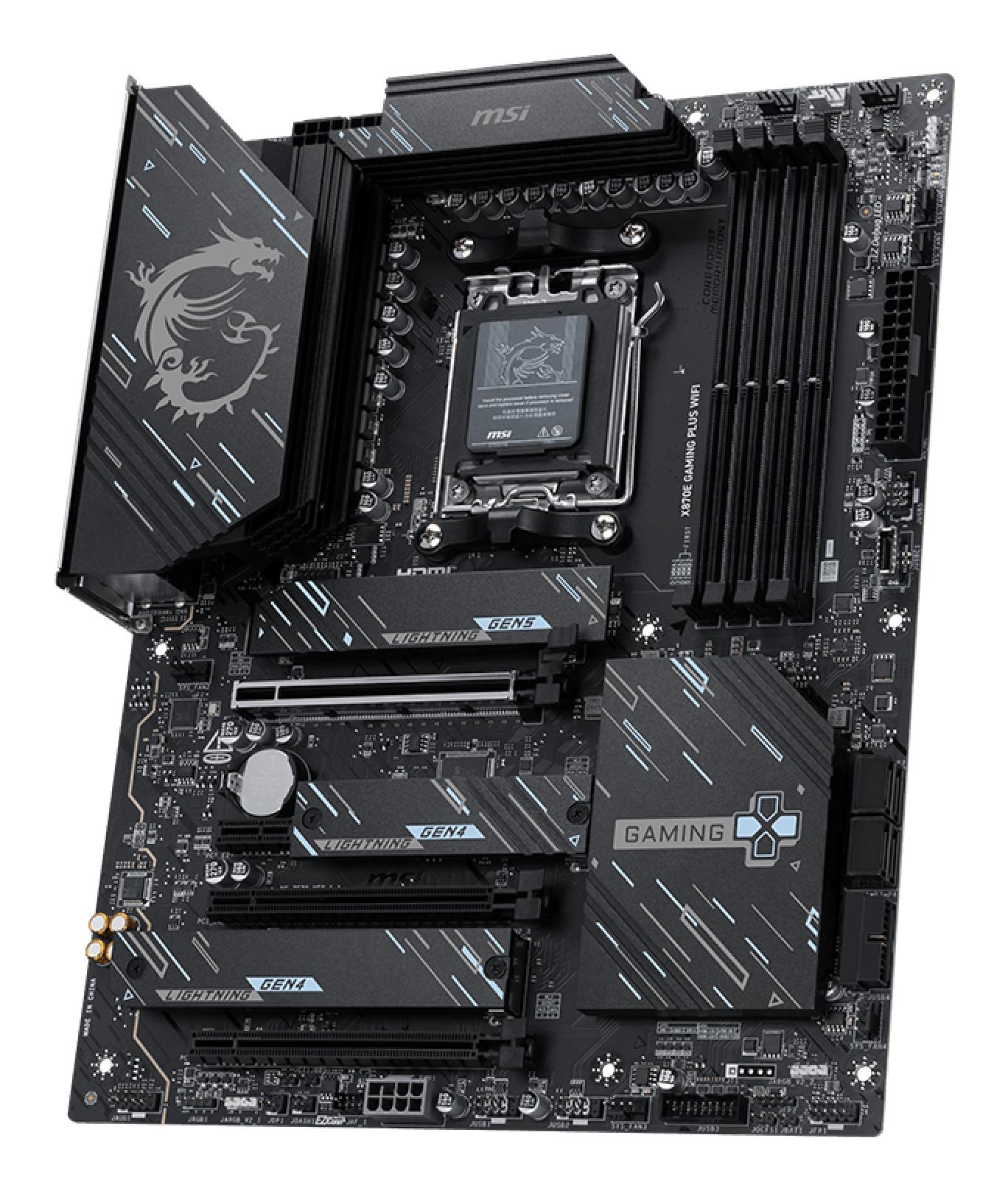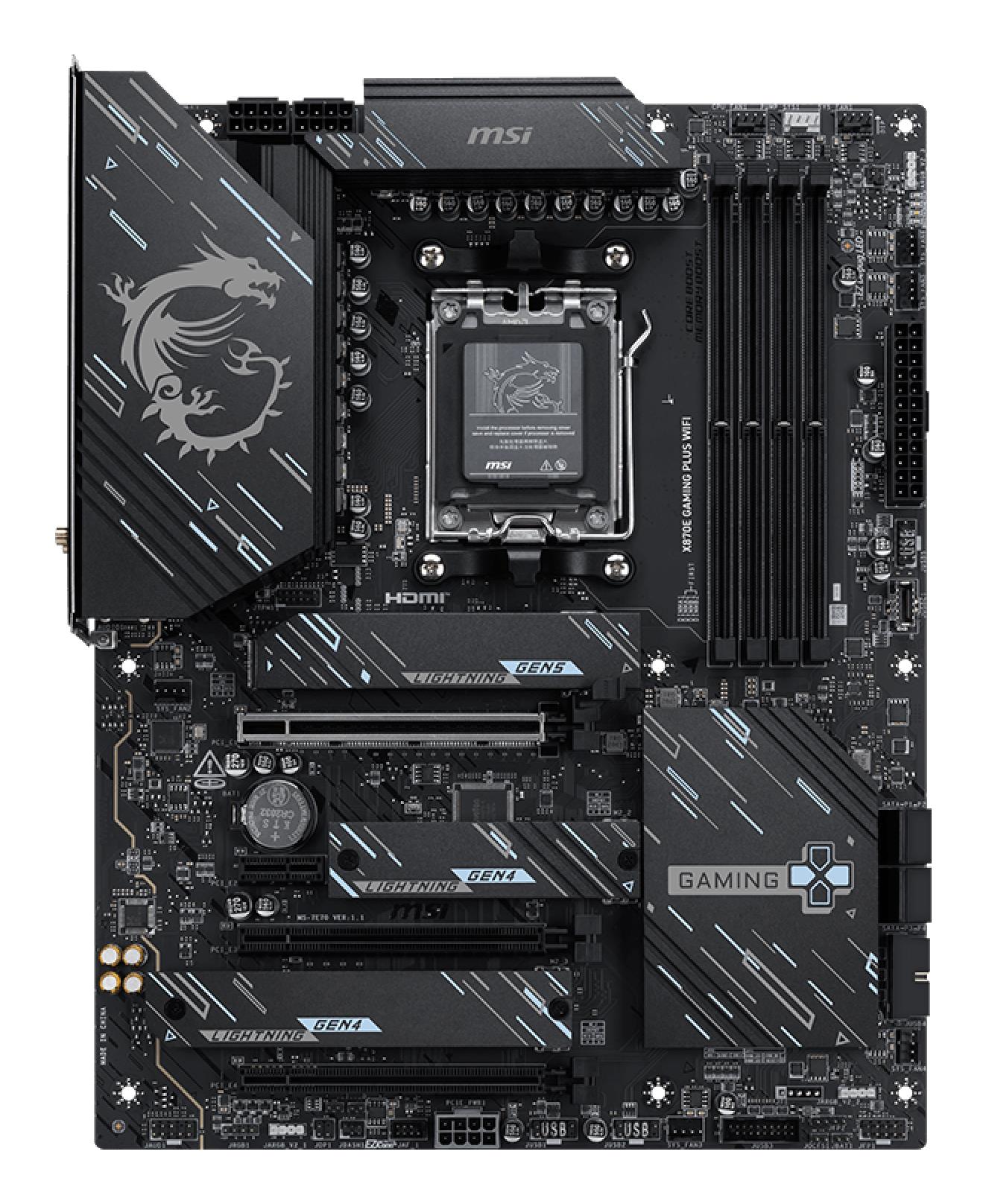 AMD X870E | ATX | Audio 7.1 channels | CPU AMD | Socket Socket AM5 | Series AMD Ryzen 7000 Series/AMD Ryzen 8000 Series/AMD Ryzen 9000 Series | Supported memory types DDR5-SDRAM | 4xNumber of memory slots | Memory slots type DIMM | 3840 x 2160 pixels | 4xUSB 2.0 ports quantity | 1xEthernet LAN (RJ-45) ports | 1xHDMI ports quantity | Wi-Fi Yes | Bluetooth Yes | Antenna included Yes