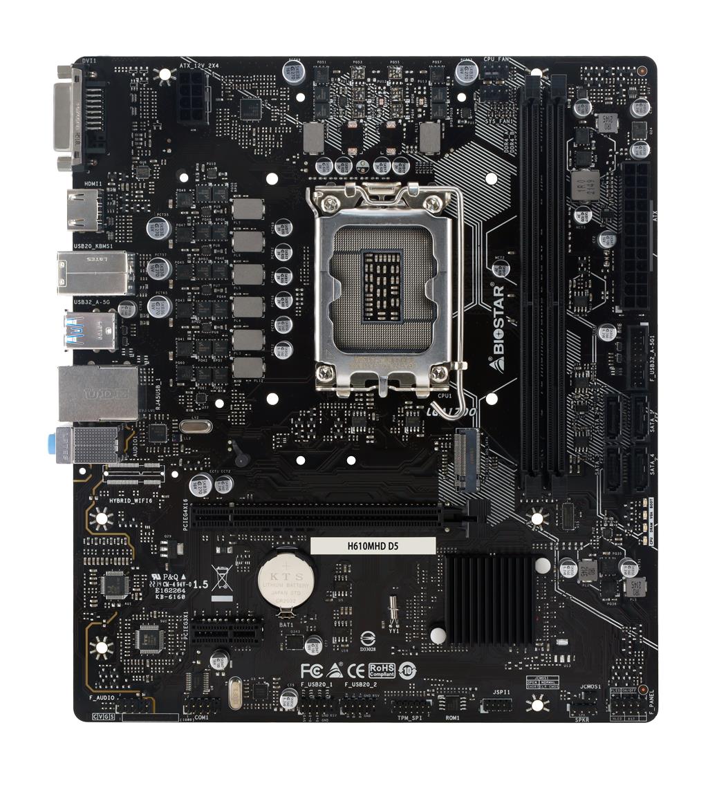 Intel H610 | LGA1700 | Micro-ATX | DDR5 | 5600/4800 MHz | Memory slots 2 | Video Depending on CPU | LAN Gigabit | Audio Realtek ALC897 | TPM Header