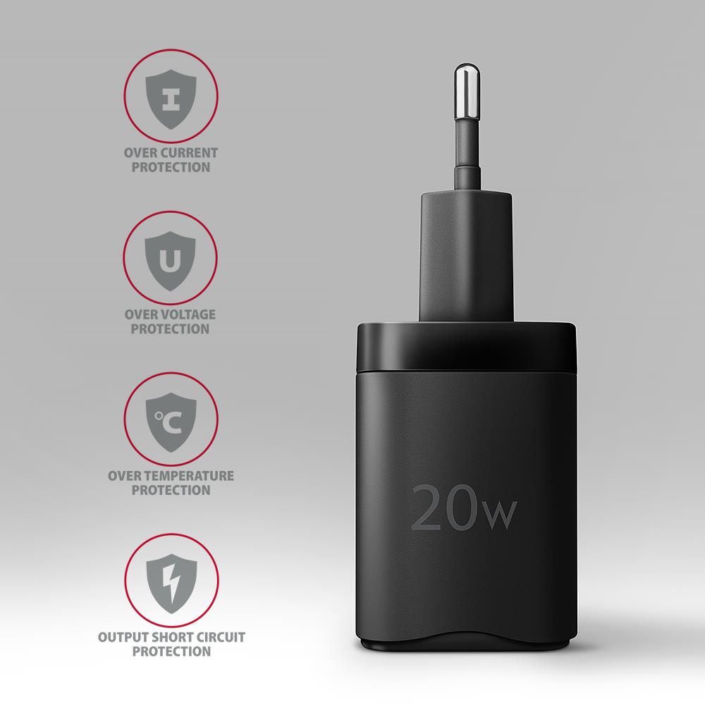 ACU-PD20 | Charger compatibility Universal/Smartphone/Tablet/Mobile phone/Smartwatch/Watch | Power source type AC | 1xUSB Type-C ports quantity | Fast charging Yes | 1xNumber of simultaneously connected devices (max) | Charger type Indoor | USB Power Delivery (USB PD) Yes | Product colour Black | Maximum power 20 W | Weight 52 g