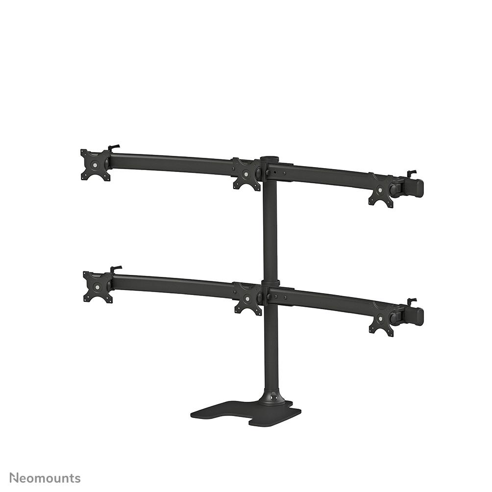 6xNumber of displays supported | Maximum weight capacity (per display) 8 kg | Maximum weight capacity 8 kg | Maximum screen size 68.6 cm (27″) | Suitable for TV Yes | Mounting type Desk | Minimum VESA mount 75 x 75 mm | Maximum VESA mount 100 x 100 mm | Height adjustment Yes | 1xNumber of pivot points | Colour Black | Weight 21.4 kg