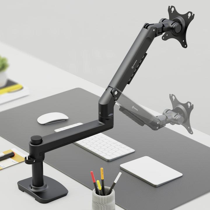 1xNumber of displays supported | Maximum weight capacity (per display) 11 kg | Maximum weight capacity 11 kg | Maximum screen size 96.5 cm (38″) | Mounting type Desk | Minimum VESA mount 75 x 75 mm | Maximum VESA mount 100 x 100 mm | Height adjustment Yes | Tilt adjustment Yes | Swivelling Yes | Rotating Yes | Colour Black | Orientation Landscape/Portrait