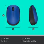 Device interface RF Wireless | Purpose Office | Optical | 1000 DPI | Scroll type Wheel | 2xButtons quantity | Black,Blue | Power source Batteries | Weight 70.5 g