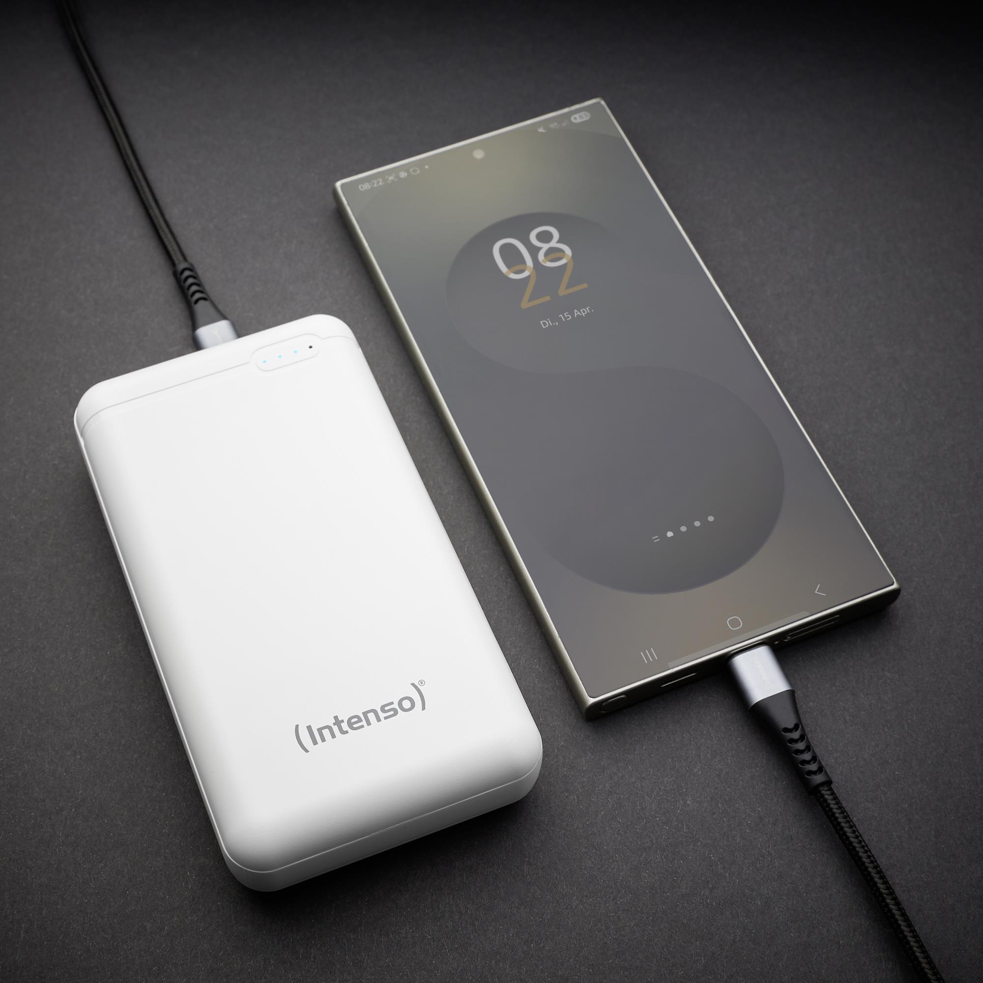 Lithium Polymer (LiPo) | Capacity 20000 mAh | 2xNumber of simultaneously connected devices (max) | Colour White | Charger compatibility Digital camcorder,Digital camera,Gaming controller,MP3/MP4,Mobile phone/Smartphone,Notebook/Netbook, | Built-in display Yes | Input interface Micro-USB + USB Type-C | Output voltage 5 V | Output current 3.1 A | Weight 343 g | Cables included USB Type-A to USB Type-C | Product Net Weight 0.343 kg