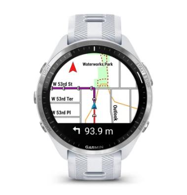 Forerunner 965 | 3.56 cm (1.4″) | AMOLED | Display type Digital | Display resolution 454 x 454 pixels | Touchscreen Yes | Watch glass type Corning Gorilla Glass 3 DX | Flash memory 32 GB | Band material Silicone | Band size One Size | Shape Round | Market positioning Smartwatch | Watch case size 47 mm | Watch case colour White | Watch case material Titanium | Band colour White | Heart rate monitor Yes | Wi-Fi Yes | Battery type Built-in battery | Battery life (max) 552 h | Battery life 23 day(s) | Weight 53 g