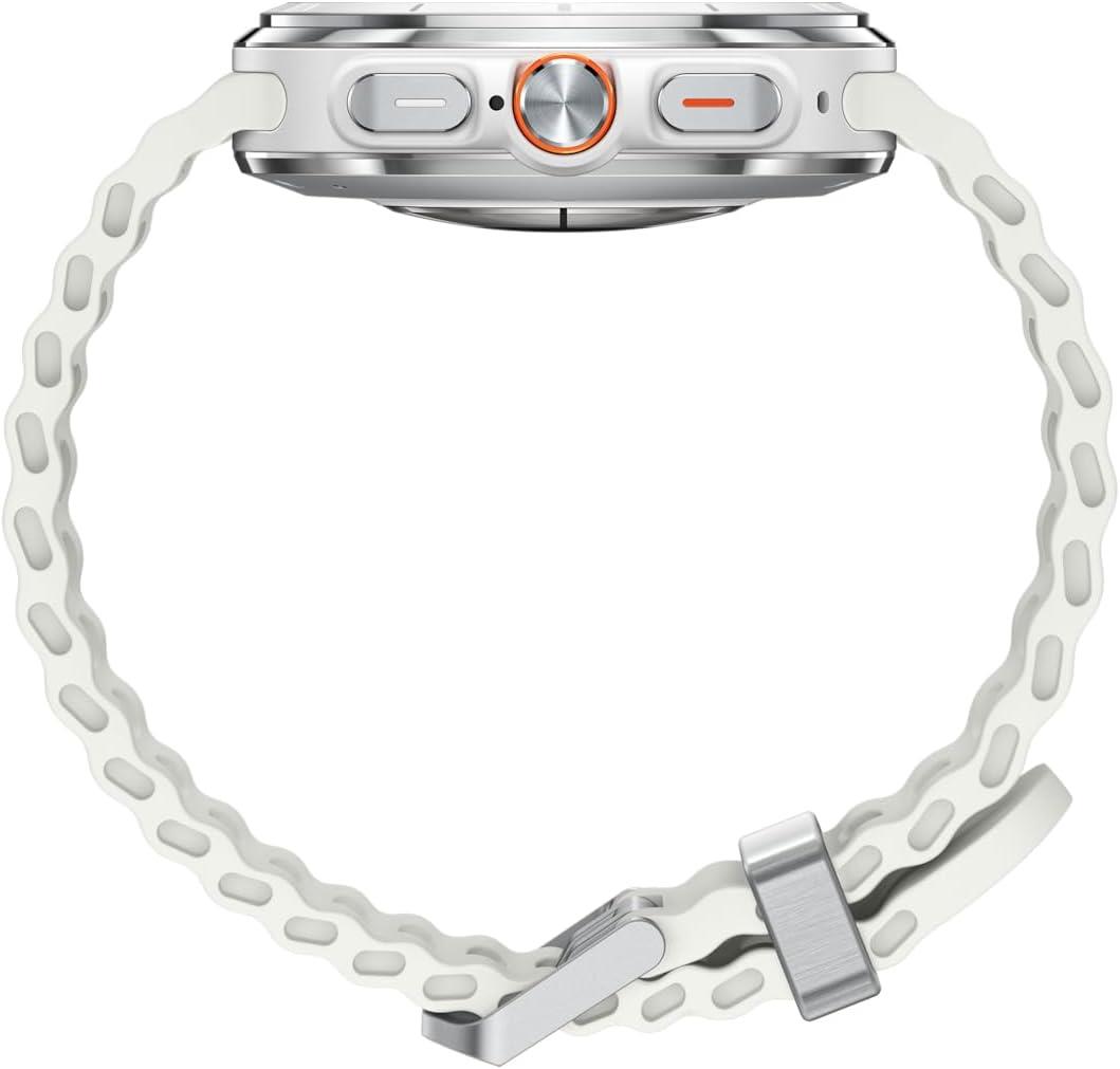 Galaxy Watch Ultra (2025) | Screen 1.5″ | Display technology Super AMOLED | Resolution 480 x 480 | Wireless connections WLAN/Bluetooth/LTE/NFC | CPU Penta-core | Memory 32GB | GPS | Colour White Titanium | Battery capacity 590 mAh | Dimensions 47.4 x 47.4 x 12.1 mm | Weight 0.0605 kg