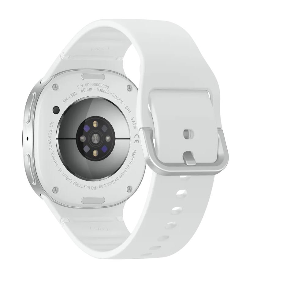 GALAXY WATCH8 | Screen 1.34″ | Display technology Super AMOLED | Resolution 438 x 438 | Wireless connections WLAN/Bluetooth/NFC | Memory 32GB | GPS | Colour Silver | Battery run time up to 30 hours | Battery capacity 325 mAh | Operating System Wear OS | Dimensions 40×40×9,8 mm | Weight 0.029 kg