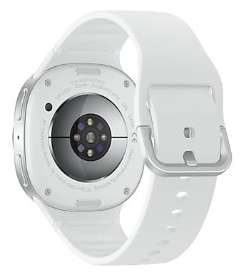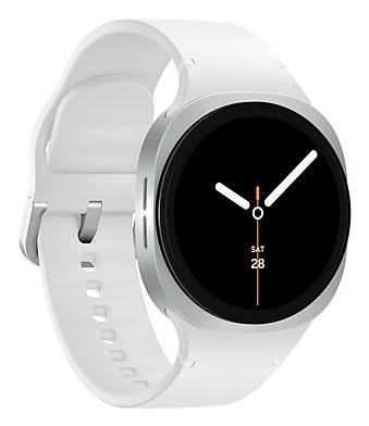 GALAXY WATCH8 | AMOLED | 3.3 cm (1.3″) | Brightness 600 cd/m² | Display type Digital | Display resolution 438 x 438 pixels | Touchscreen Yes | Operating system installed Wear OS | RAM capacity 2000 MB | Flash memory 32 GB | Shape Round | Market positioning Smartwatch | Watch case size 40 mm | Watch case colour Silver | Watch case material Aluminium | Band colour White | Heart rate monitor Yes | Near Field Communication (NFC) Yes | Wi-Fi Yes | Bluetooth version 5.3 | Battery type Built-in battery | Battery capacity 435 mAh | Charging time 1.3 h | Weight 30 g
