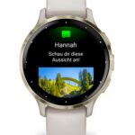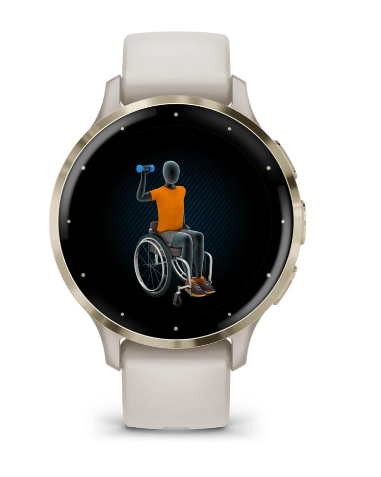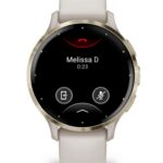 Venu 3S | AMOLED | 3.05 cm (1.2″) | Display type Digital | Display resolution 390 x 390 pixels | Touchscreen Yes | Watch glass type Corning Gorilla Glass 3 | Flash memory 8 GB | Band material Silicone | Shape Round | Market positioning Smartwatch | Watch case size 41 mm | Watch case colour Gold/Ivory | Watch case material Polymer | Band colour Ivory | Heart rate monitor Yes | Wi-Fi Yes | Battery type Built-in battery | Battery life 10 day(s) | Weight 40 g