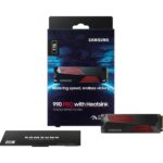 SSD series 990 PRO with Heatsink | 1000 GB | M.2 | PCI Express 4.0 | NVMe Yes | 2.0 | Component for PC | M.2 SSD size 2280 (22 x 80 mm) | Write speed 6900 MB/s | Read speed 7450 MB/s | Mean time between failures (MTBF) 1500000 h | Weight 28 g | Operating temperature (T-T) 0 – 70 °C