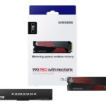 SSD series 990 PRO with Heatsink | 1000 GB | M.2 | PCI Express 4.0 | NVMe Yes | 2.0 | Component for PC | M.2 SSD size 2280 (22 x 80 mm) | Write speed 6900 MB/s | Read speed 7450 MB/s | Mean time between failures (MTBF) 1500000 h | Weight 28 g | Operating temperature (T-T) 0 – 70 °C