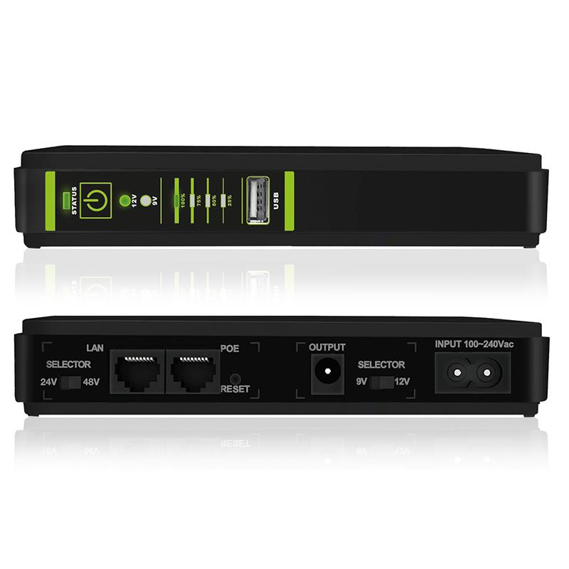UPS topology Standby (Offline) | Output power 18 W | Input operation voltage (min) 110 V | Input operation voltage (max) 240 V | Input frequency 50/60 Hz | Number of input phases 1 | Number of output phases 1 | USB port Yes | 1xEthernet LAN (RJ-45) ports | Battery technology Lithium-Ion (Li-Ion) | Colour Black | LED indicators Yes | International Protection (IP) code IP20 | Operating temperature (T-T) 0 – 55 °C | Operating altitude 0 – 3000 m | Weight 500 g